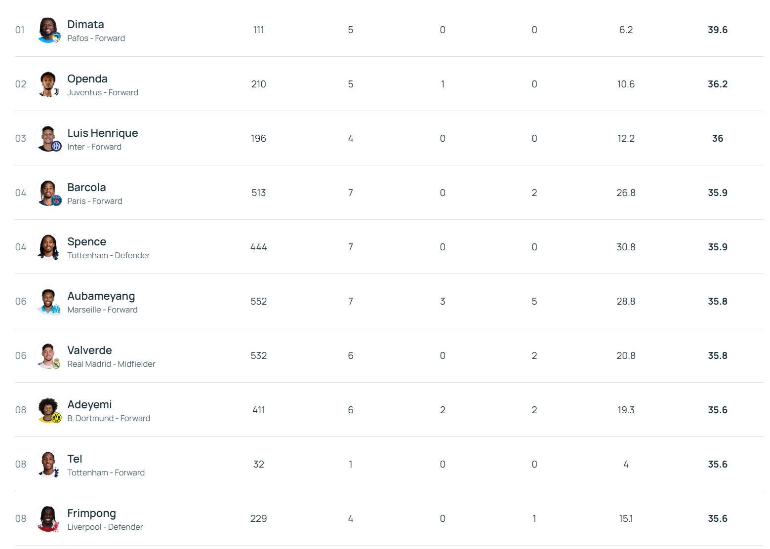 8.阿德耶米(多特蒙德) 35.6km/h