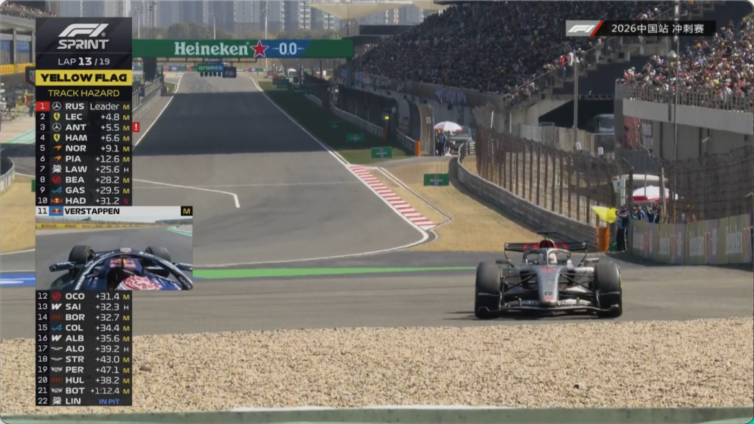 随着五盏红灯熄灭,2026赛季F1中国站冲刺赛正式开始!安东内利起步出现失误,跟上一场比赛一样。去年中国站的冲刺赛冠军汉密尔顿迅速上到第二位,诺里斯守在第三。